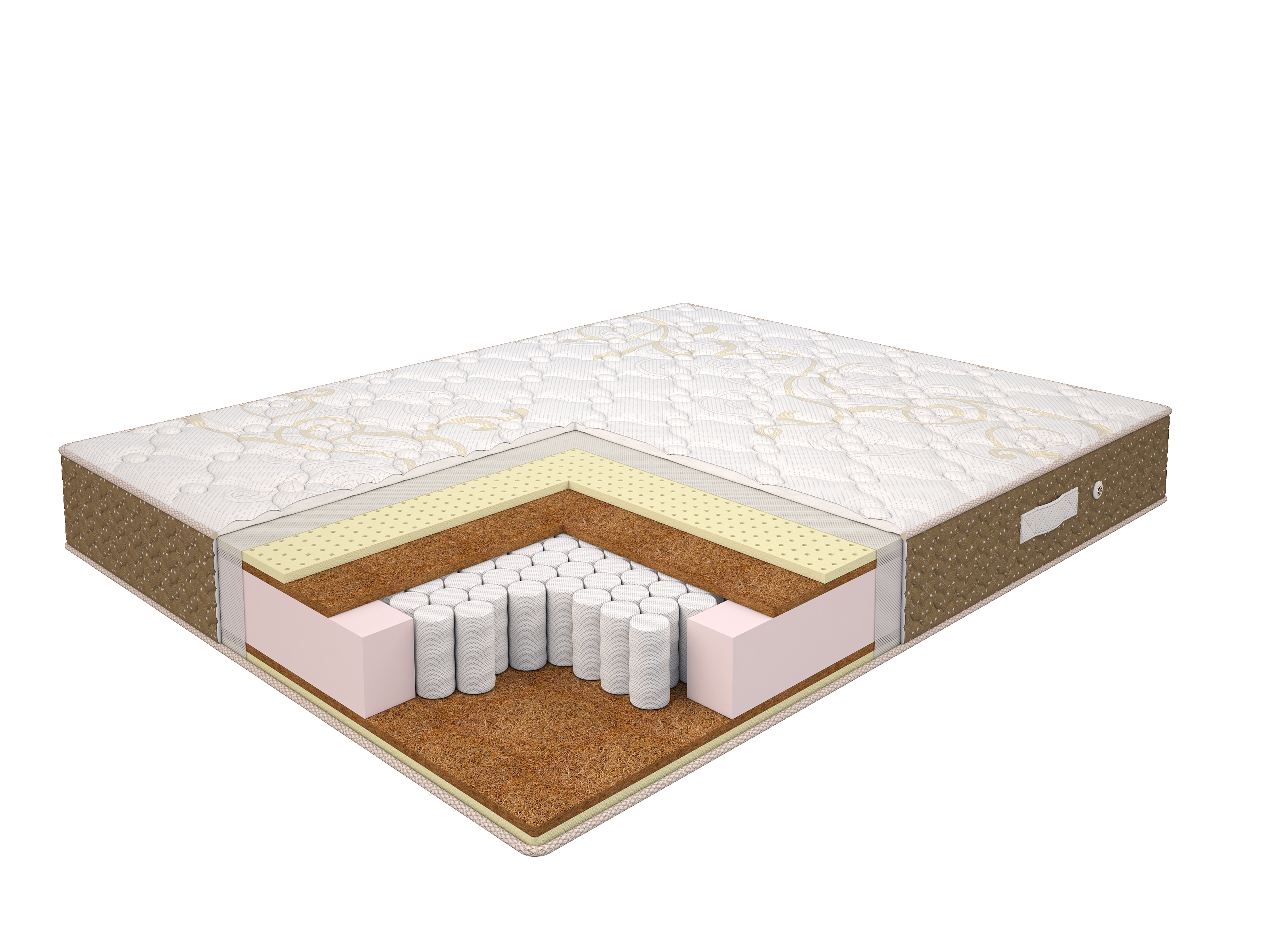 Упругий и надежный матрас на основе пружинного блока мультипакет, кокосового волокна и слоя латекса. Кокосовое волокно, пропитанное латексом, обеспечивает данной модели упругость, а слой латекса придаёт матрасу комфортные условия для сна и отдыха.
