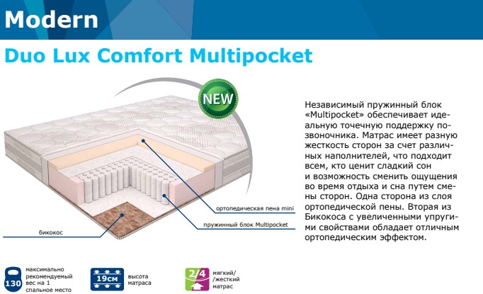 Матрас "Duo Lux Comfort" (серия "Modern") - матрас двусторонней жесткости на мультипакете.