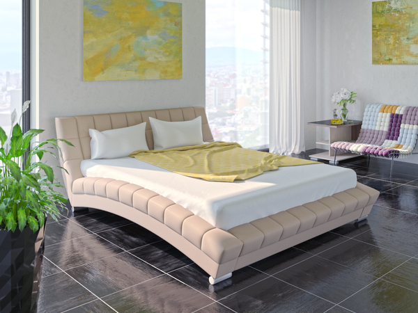 Кровать Оливия 160 экокожа бежевый с ортопедическим основанием