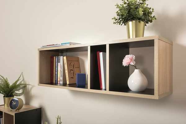 Полка навесная Базис 3 09.127 черный, дуб сонома