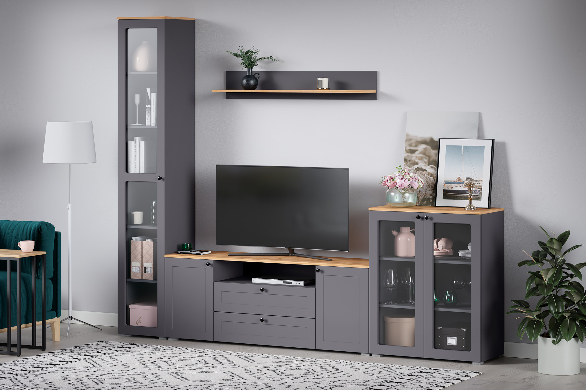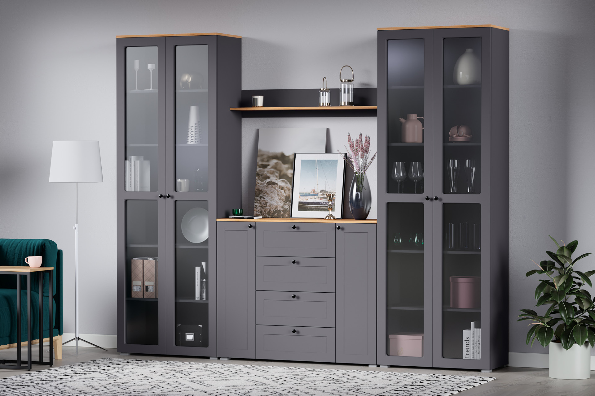 Шкаф-витрина в гостиную Остин 16.394.02 серый графит 0162 РЕ, дуб золотой CRAFT, графит ZB 856-2 ПВХ
