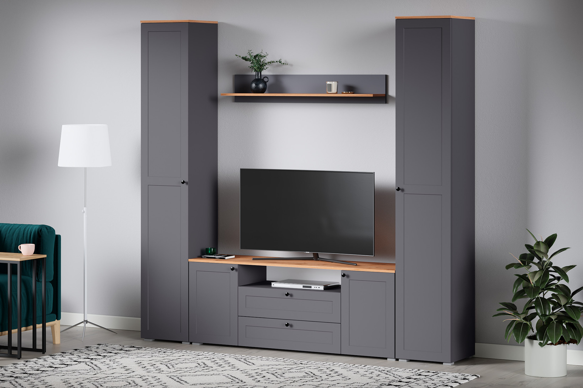 Шкаф в гостиную Остин 16.307 серый графит 0162 РЕ, дуб золотой CRAFT, графит ZB 856-2 ПВХ