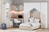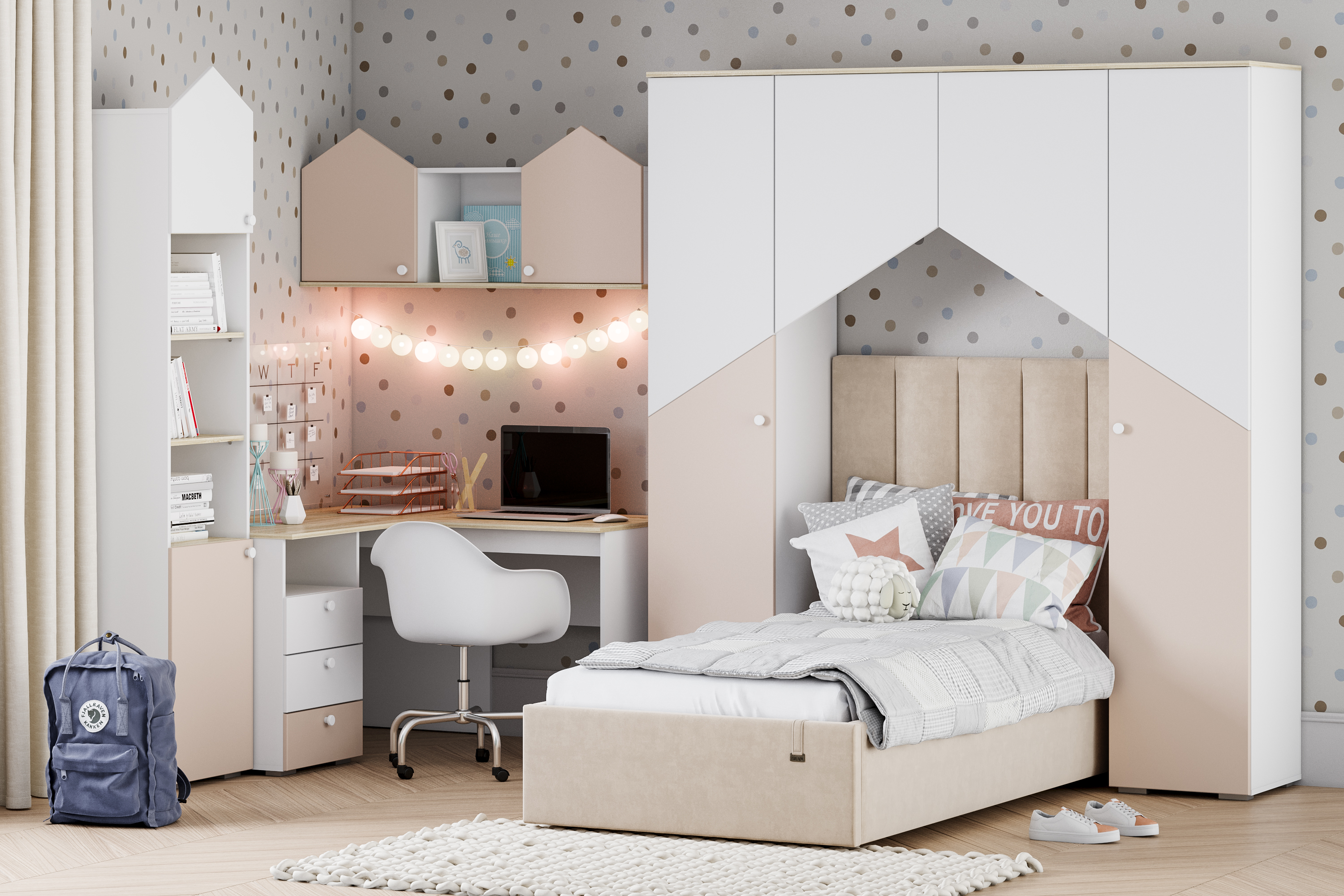Особенности стиля детской «Банни» - это: светлые, спокойные оттенки в единой гамме. Скругленные ручки-кнопки не имеют острых граней. Ящики для хранения белья позволят навести порядок в комнате и расположить вещи. Скандинавская стилистика не любит загромождения мебелью. Только функциональность и практичность. Если правильно спланировать интерьер, в детской будет много места для хранения и пространства для игр. Фасады выполнены из МДФ с покрытием пленкой ПВХ.