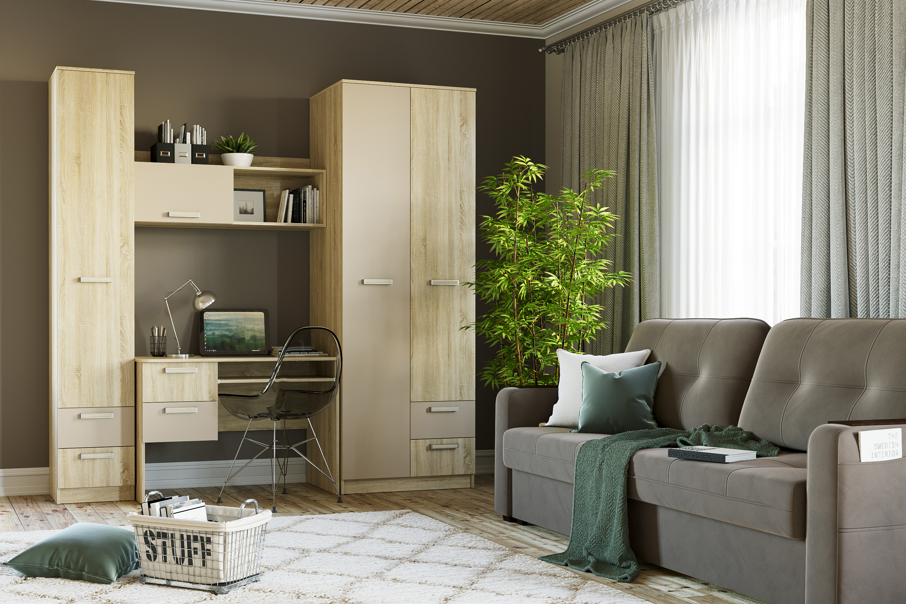 Шкаф для одежды с ящиками Акварель НМ 014.07 М дуб сонома, капучино