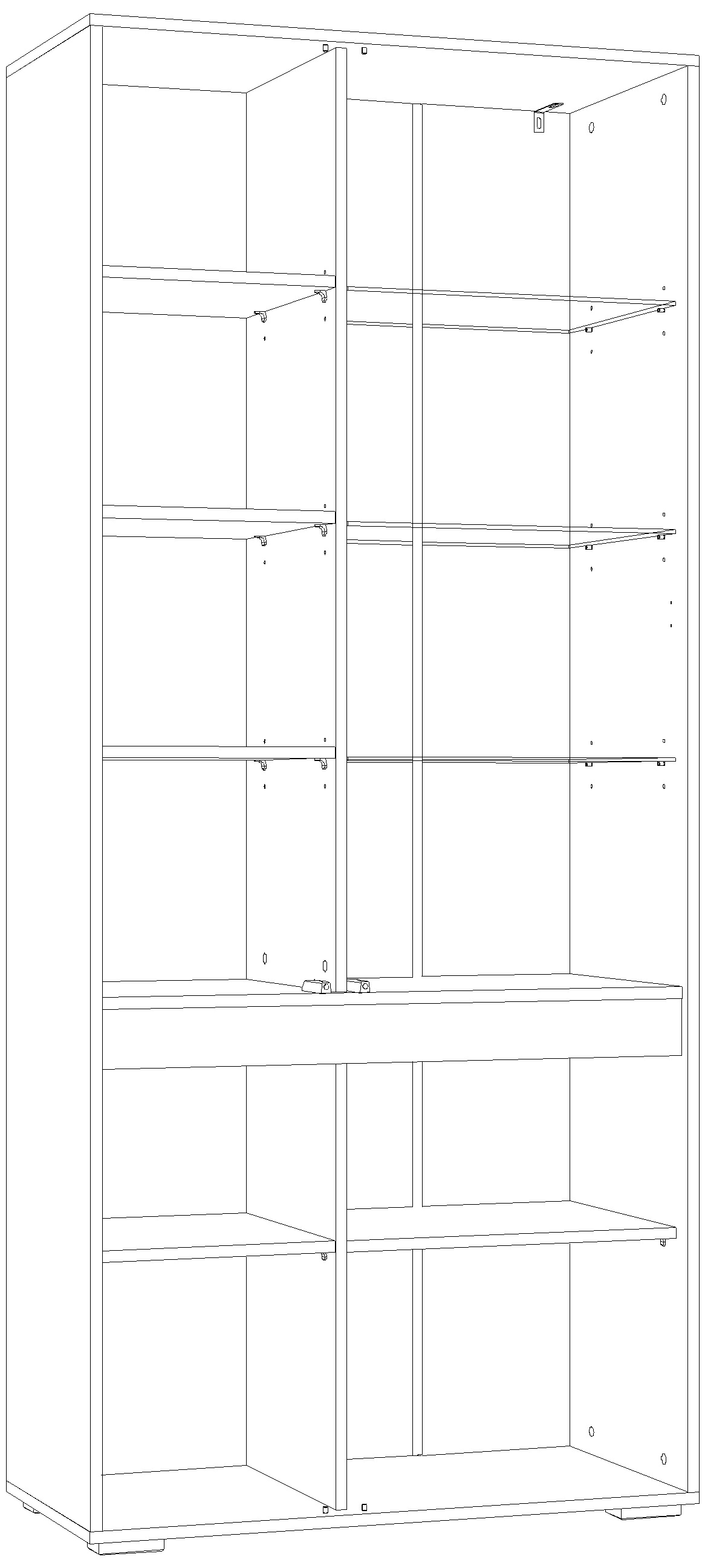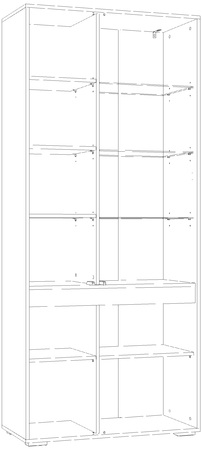 Предназначен для одновременного хранения посуды и других вещей и предметов различного назначения. Представляет собой каркас из панелей ЛДСП со стяжной вертикальной панелью, со стяжными и съемными полками. Каркас шкафа универсальный, может быть собран с секцией со стеклянными полками (фасадом-витриной) как на левую, так и на правую стороны. Двери не универсальные: левые или правые.