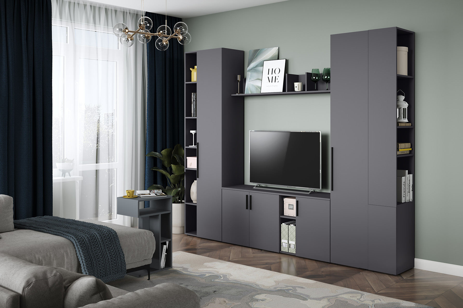 Тумба под ТВ Эйр 16.55 серый графит 0162 РЕ, собирается на любую сторону