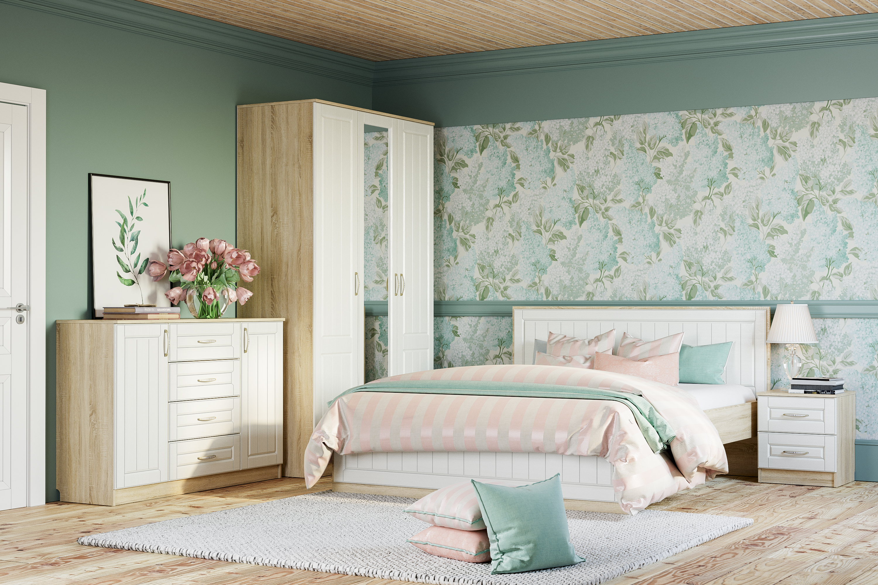 Кровать Оливия 120 с щитовым основанием НМ 040.34-02 Х + ящик для белья (2 шт.) НМ 040.39-02 Х