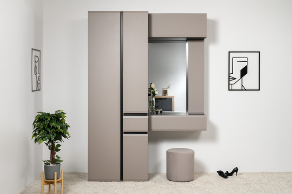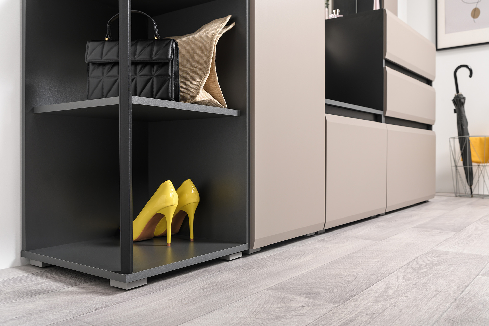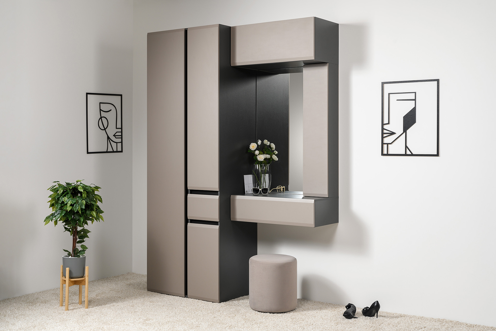 Тумба для обуви Сидней 16.129 антрацит, веллюто капучино ПВХ (универсальная сборка)