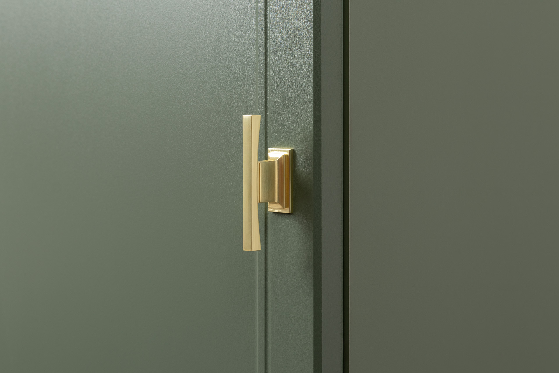 Изящные линии, глубокая фрезеровка фасадов из МДФ и благородные оттенки. Утончённая «Слоновая кость» и изысканная «Олива Шагрень» с глубоким зелёным тоном — создают атмосферу уюта, тепла и благородства. Металлические ручки и опоры золотого цвета придают мебели утончённый блеск, а петли и направляющие с доводчиками обеспечивают плавное и бесшумное закрытие фасадов.