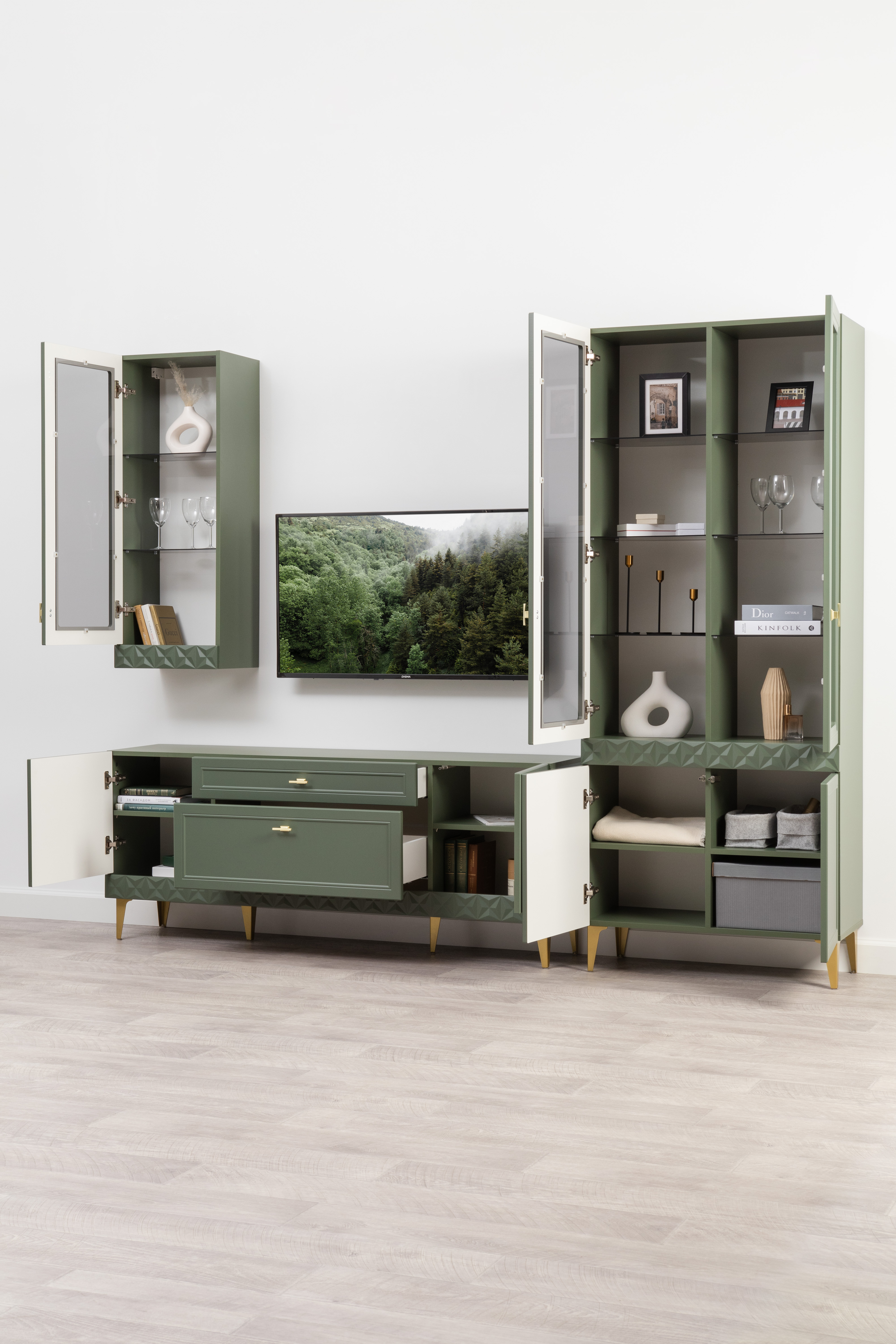 Шкаф-витрина Марион 16.397.02 дымчатый зеленый K521, олива шагрень AG 1050 ПВХ (собирается на любую сторону)