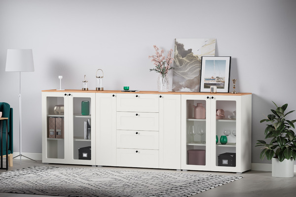 Комод Остин 16.240 белый PE шагрень, дуб вотан, белый РЕ шагрень ПВХ