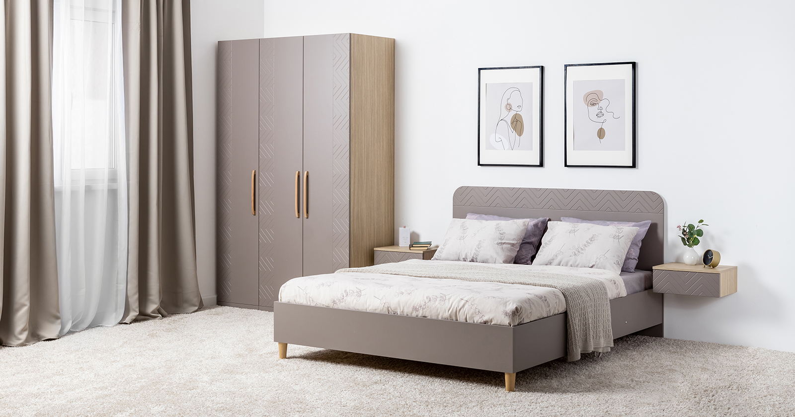 Спальня Амьен композиция 2 плэйн, веллюто капучино ПВХ (универсальная сборка)