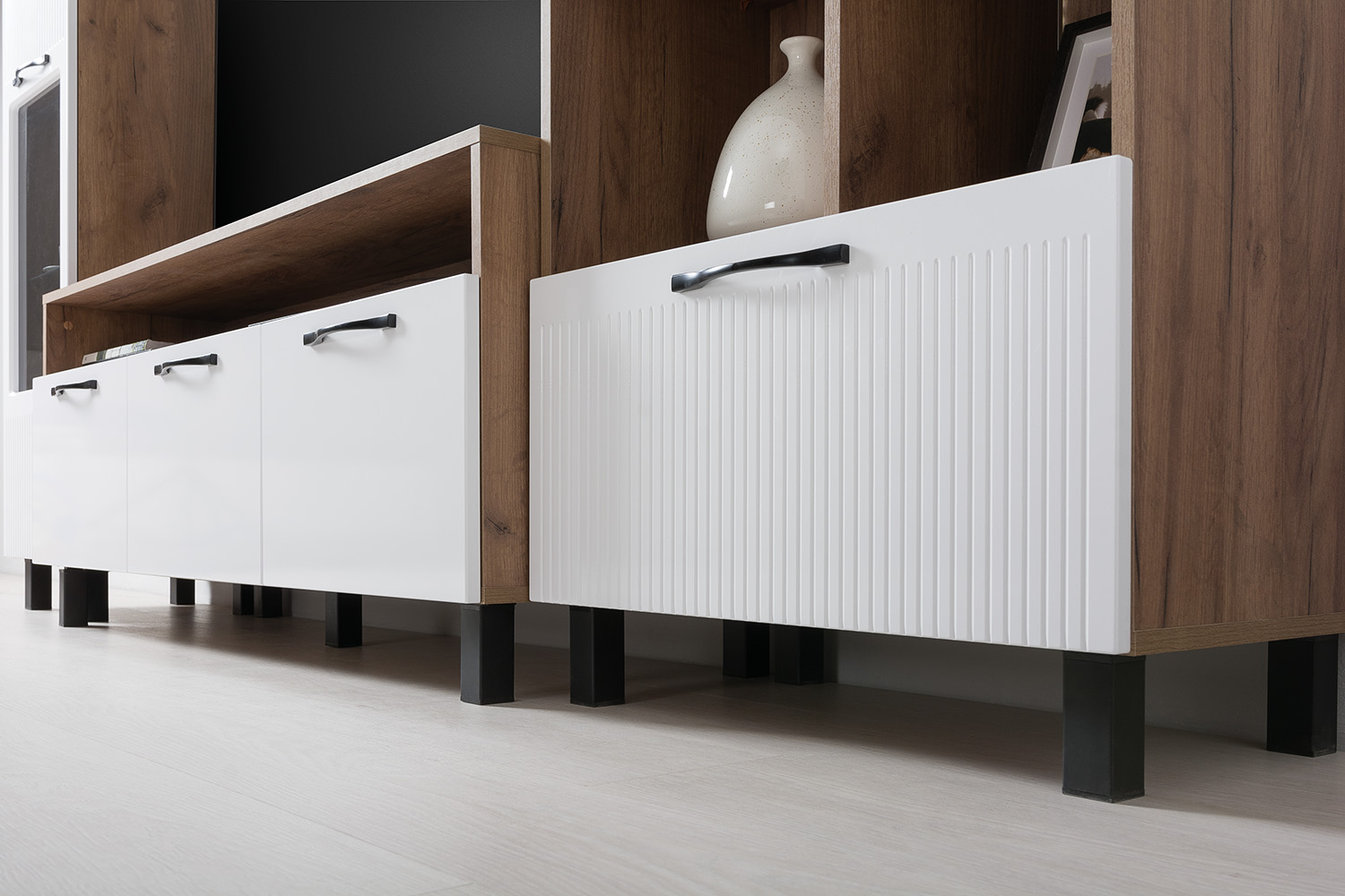 Тумба под ТВ в гостиную Манхеттен 13.231 дуб крафт табачный, белая шагрень ПВХ