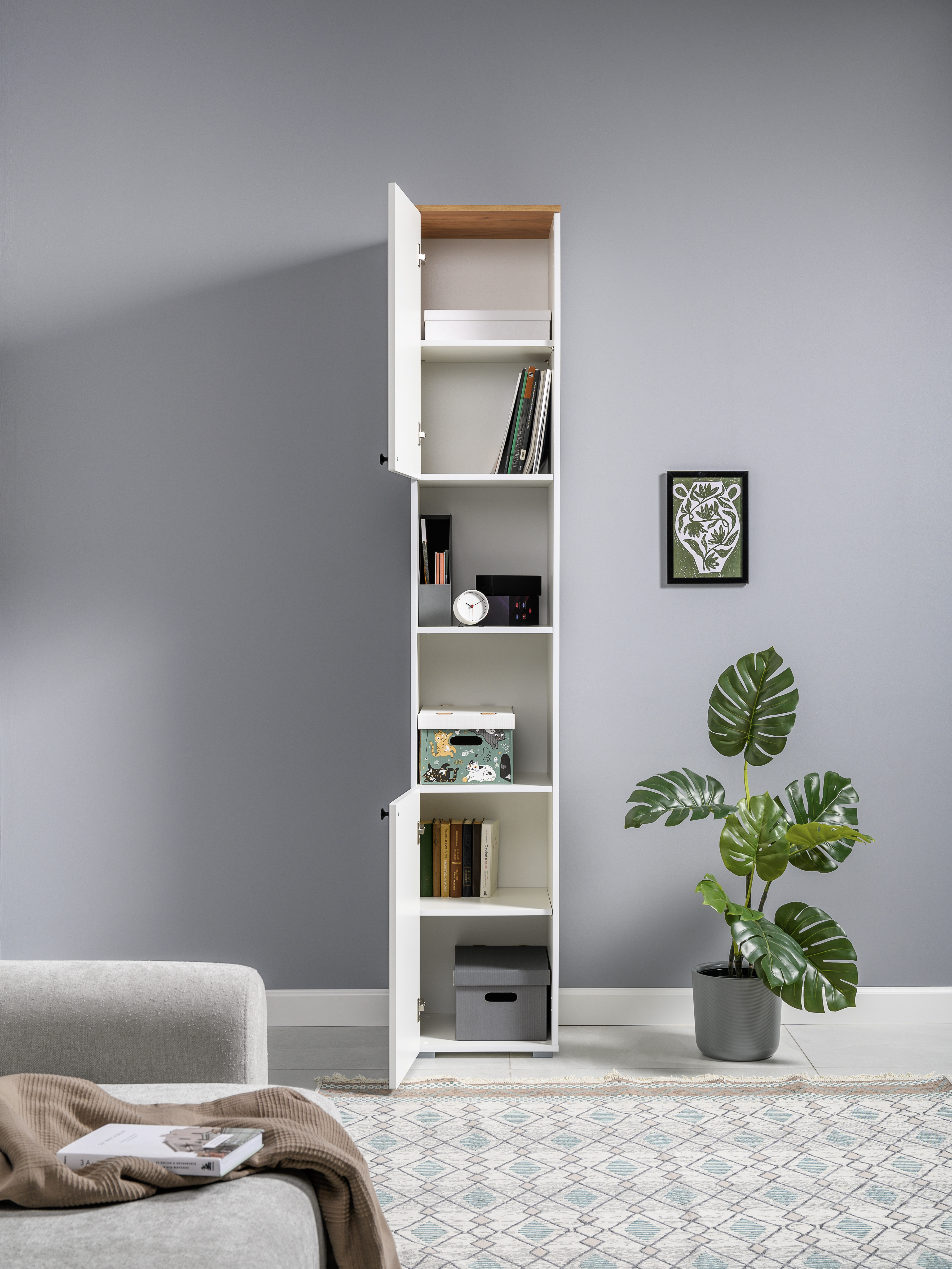 Стеллаж Остин 16.427 белый PE шагрень, дуб золотой CRAFT, белая шагрень 4101 ПВХ, сборка на любую сторону