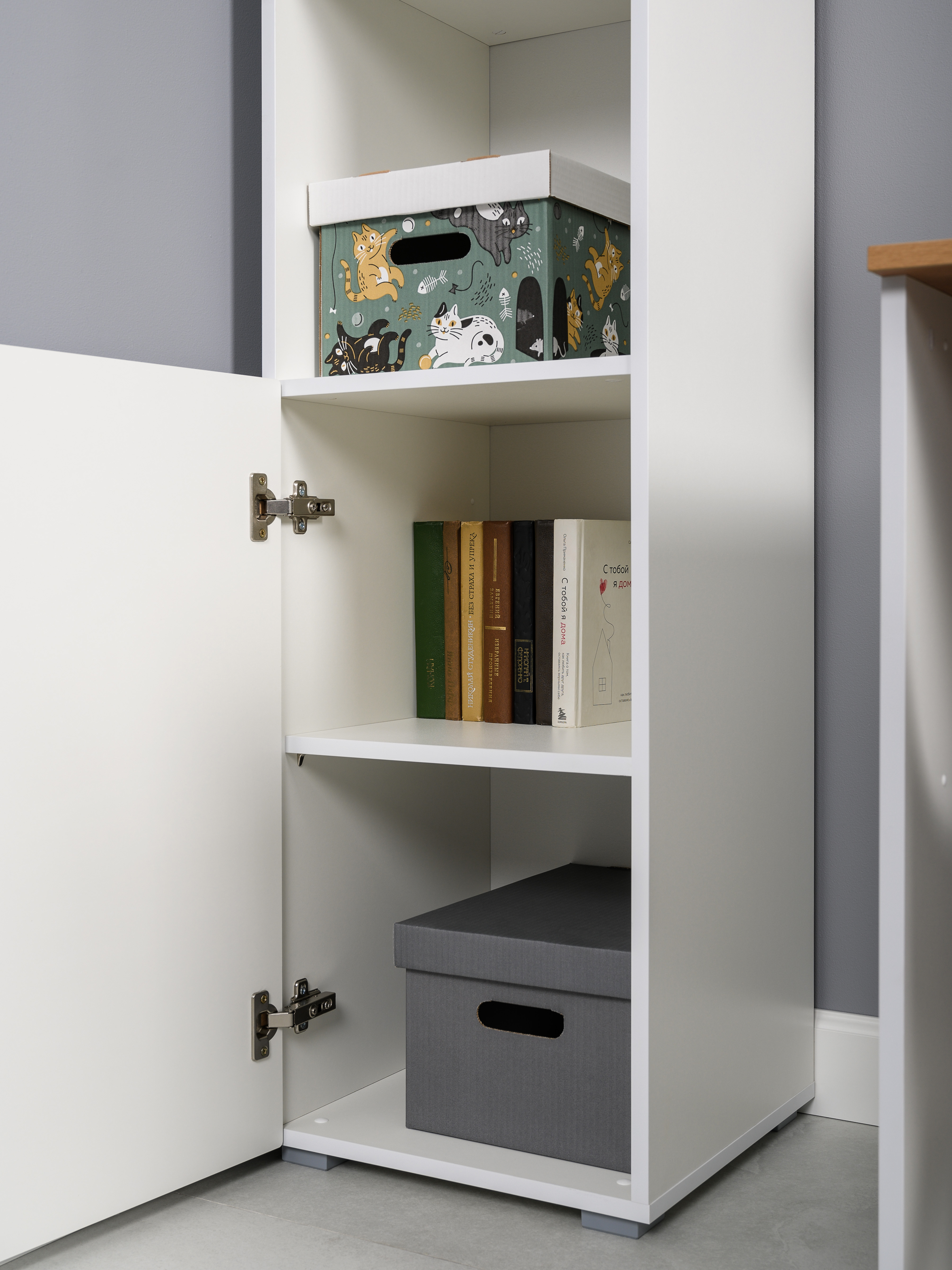 Стеллаж торцевой Лайн 10.141 дуб серый CRAFT, белый глянец ПВХ