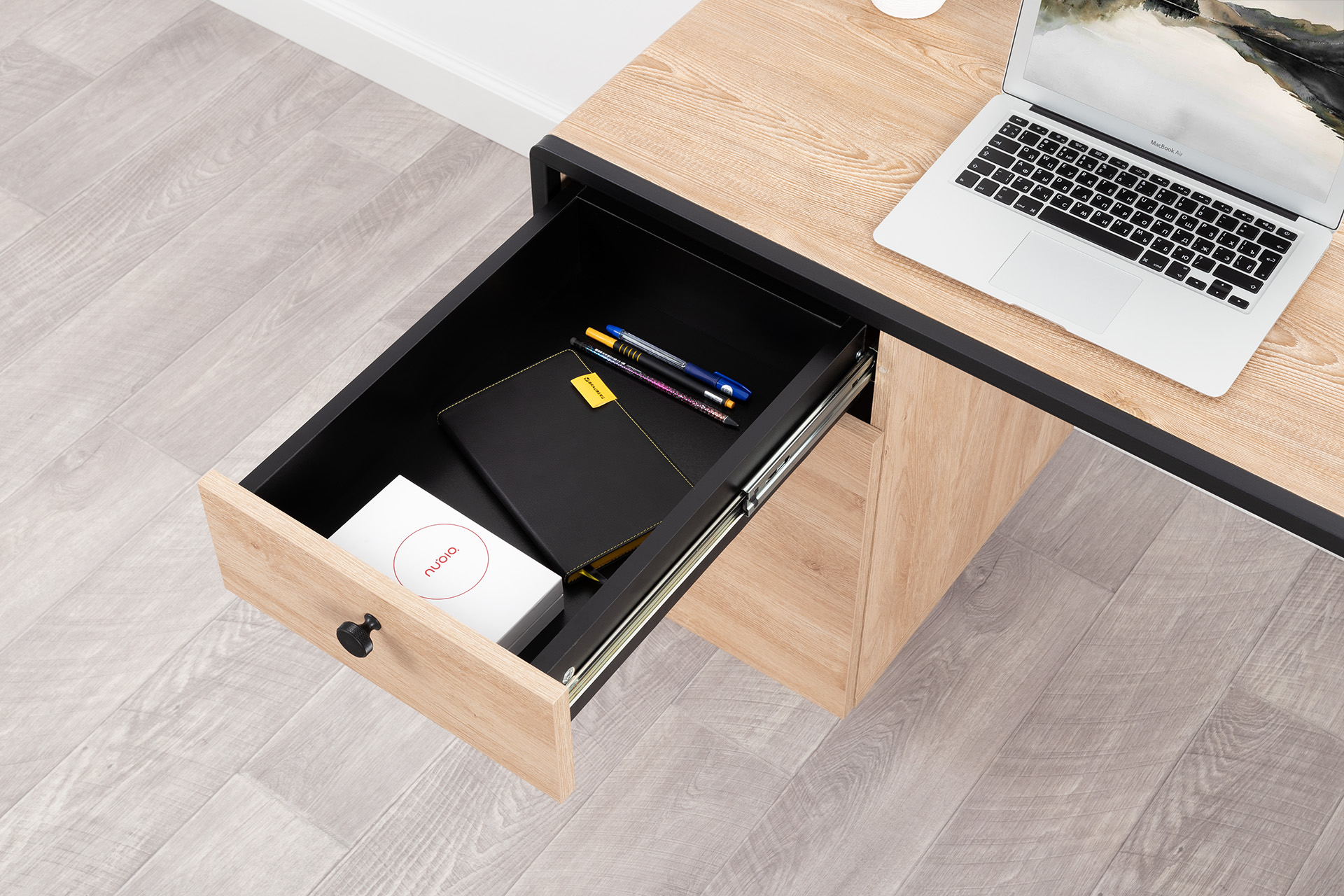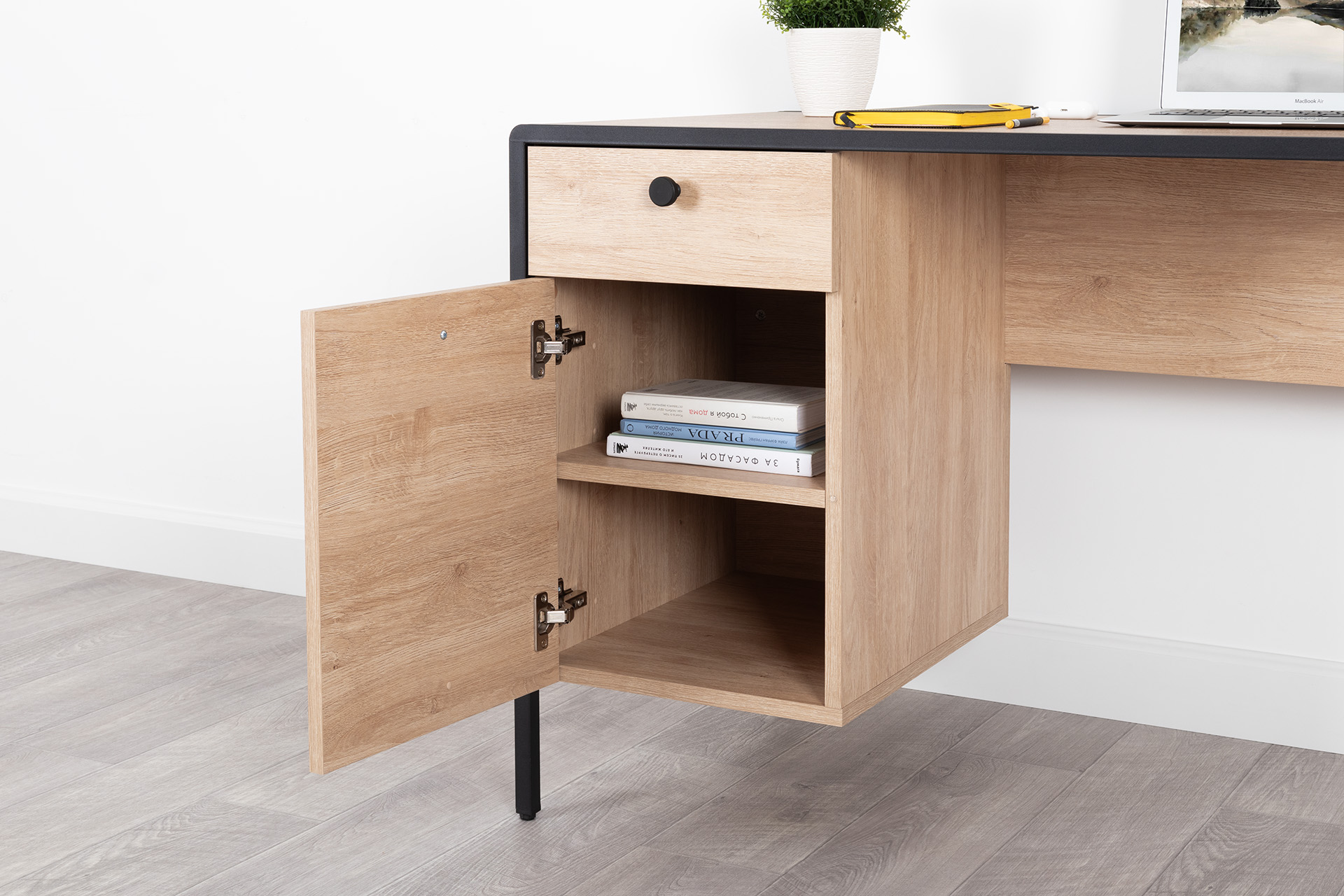 Каркас из металла, столешница из МДФ с закруглением и тактильно приятные металлические ручки с накаткой – визитная карточка модели.