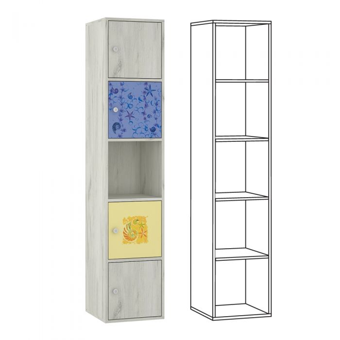 Стеллаж Тетрис 1 315 дуб белый craft капри синий фотопечать море