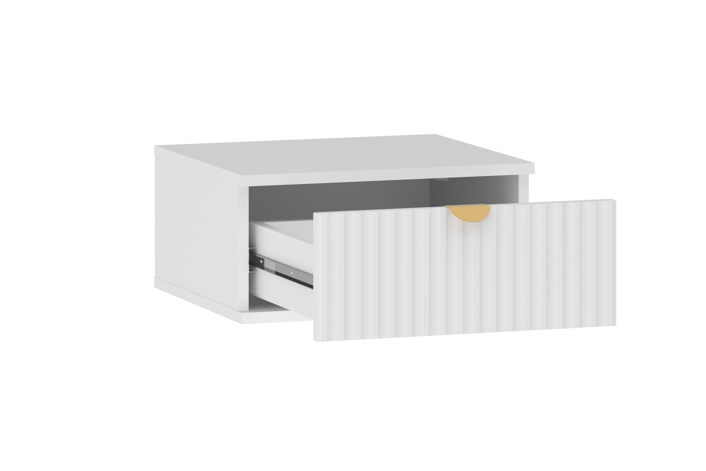 Тумба оснащена выдвижным ящиком, который открывается плавно и бесшумно благодаря шариковым направляющим.