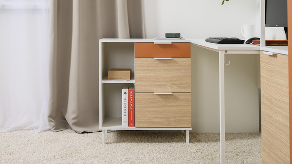 Тумба прикроватная Лакки бук песочный, дуб тортуга ПВХ, белый глянец ПВХ
