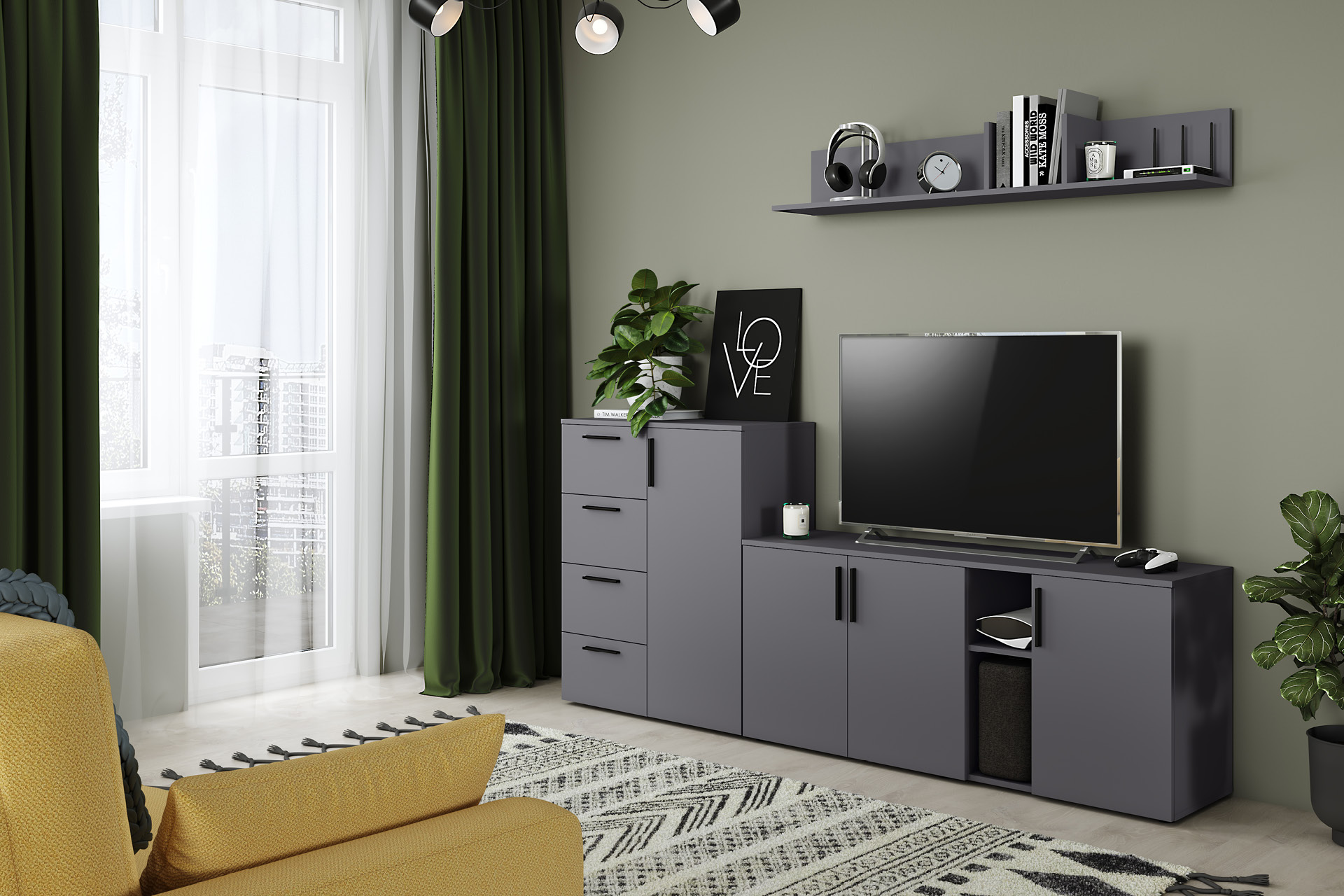 Тумба под ТВ в гостиную Квадро 13.275 battle rock FSC santiago
