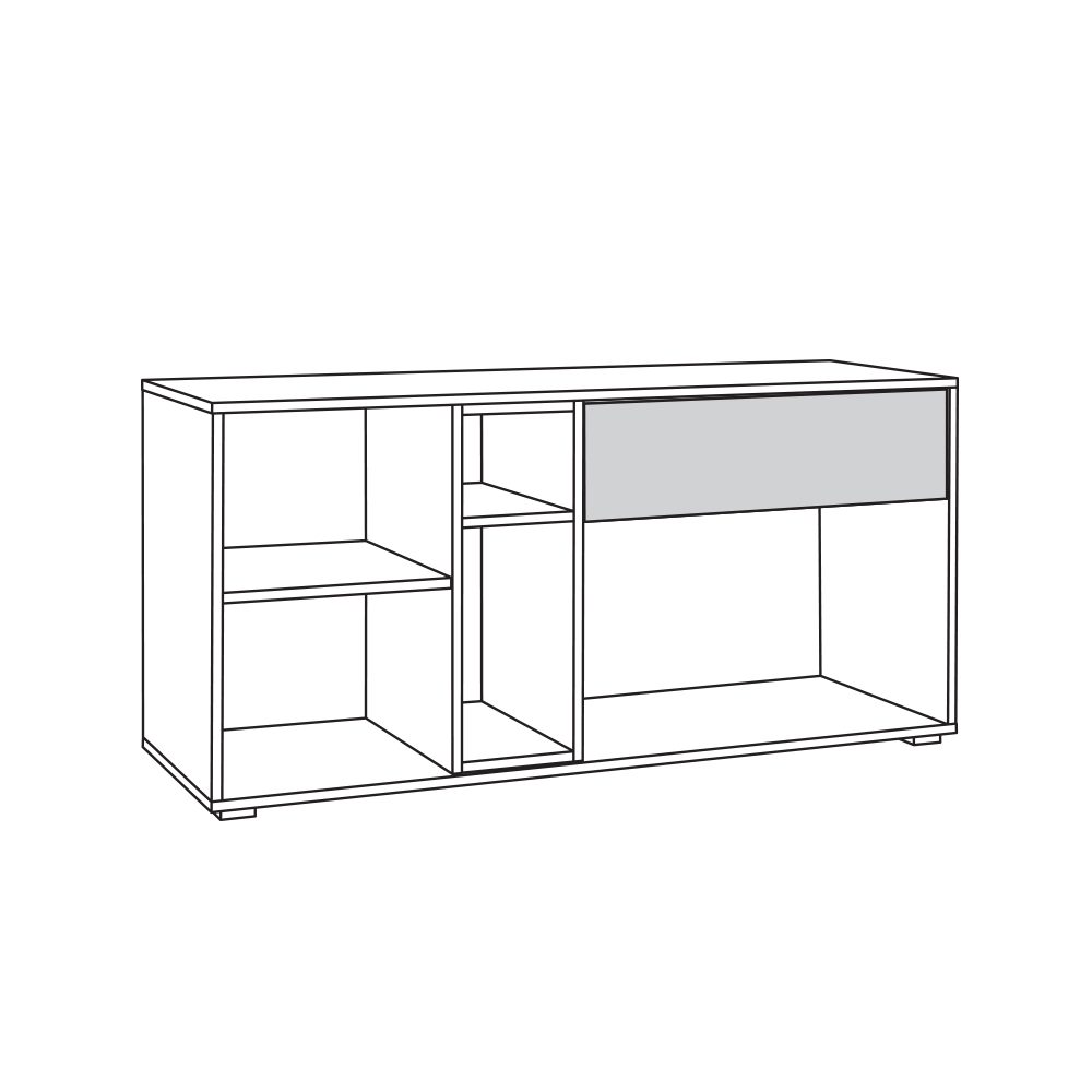 Тумба под ТВ в гостиную Петра 13.281 белый PE шагрень, милк софт ПВХ, бетон чикаго беж ПВХ
