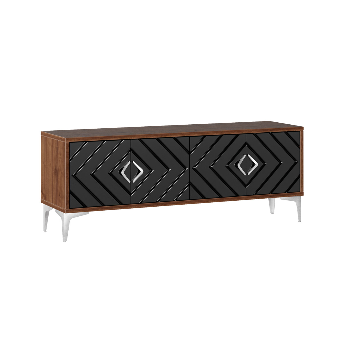 Тумба под ТВ в гостиную Квадро 13.276 белый PE шагрень, черный