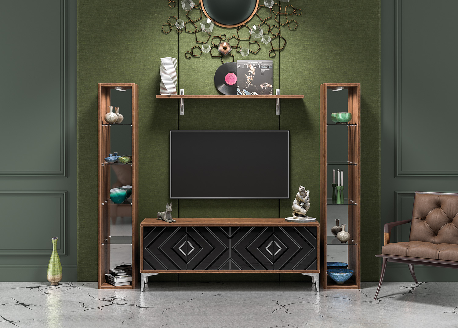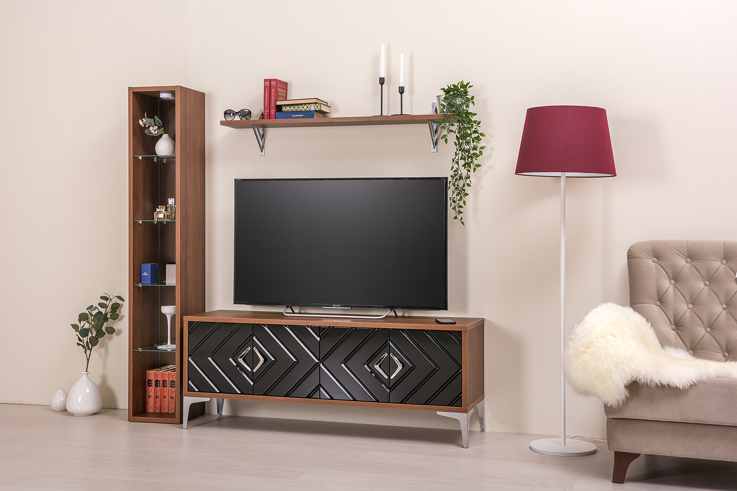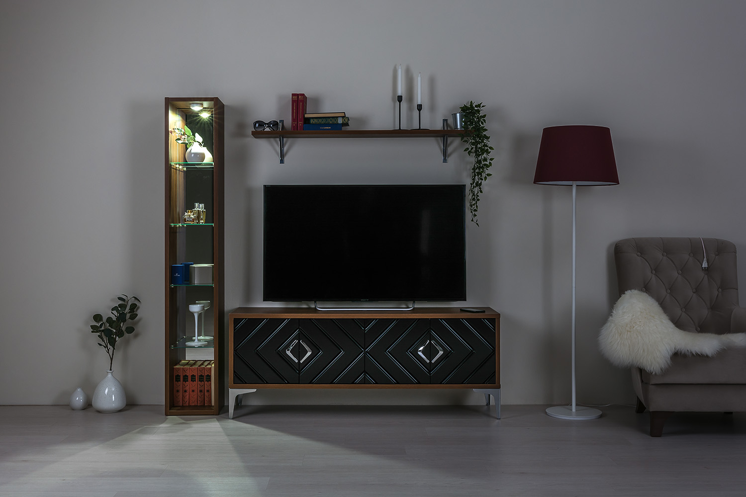 Компактное и стильное решение для гостиной.