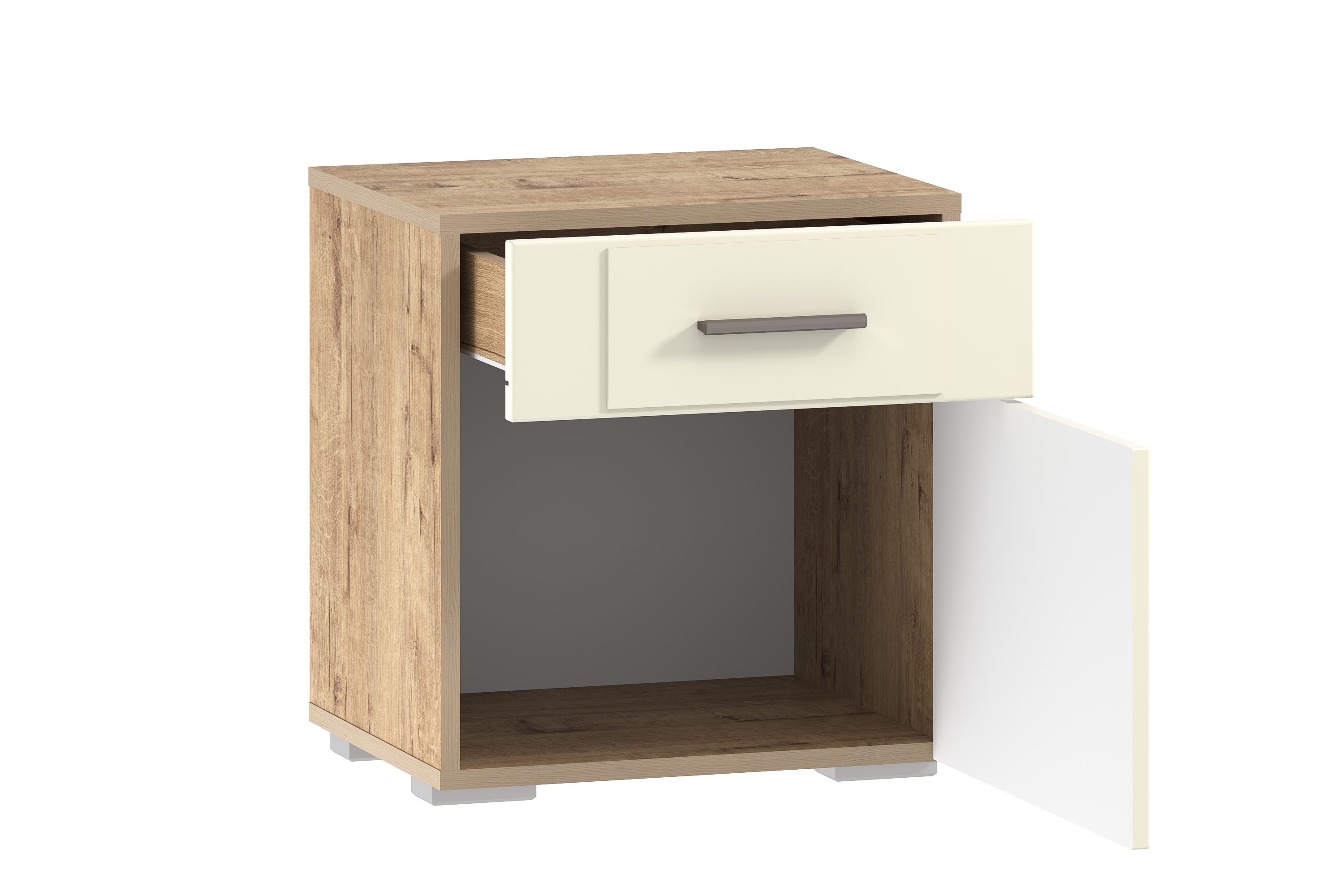 Тумба прикроватная Лакки бук песочный, дуб тортуга ПВХ, белый глянец ПВХ