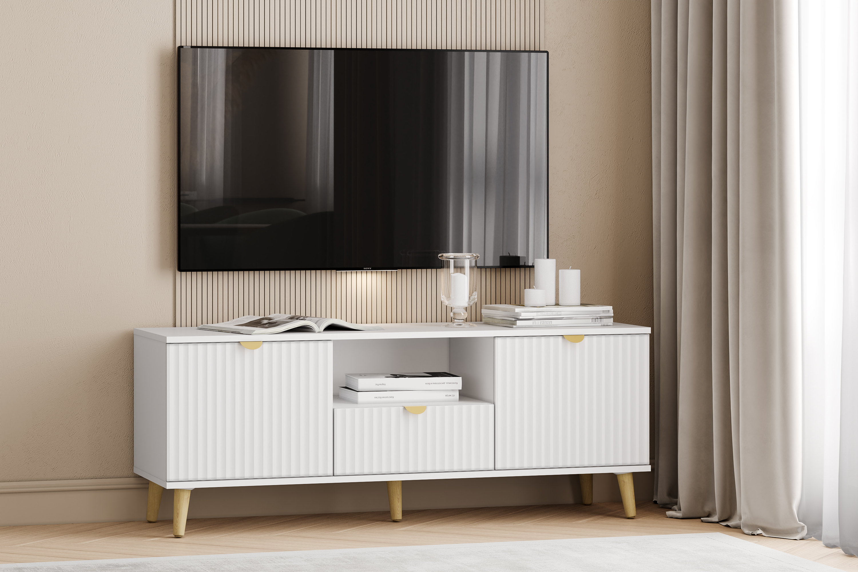 Тумба под ТВ в гостиную 13.267.03 белый PE шагрень, альберо, милк софт ПВХ