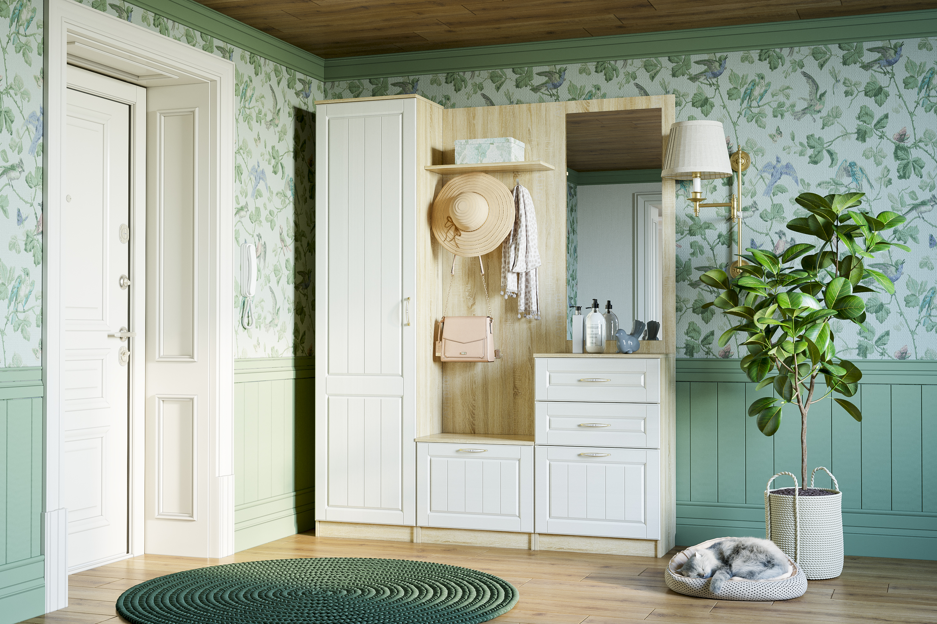Вешалка Оливия НМ 040.59Х выполнена в виде настенной панели с тремя крючками. Сверху модуля располагается полка для головных уборов и аксессуаров. Вешалка обеспечит быстрый доступ к самым нужным предметам гардероба.